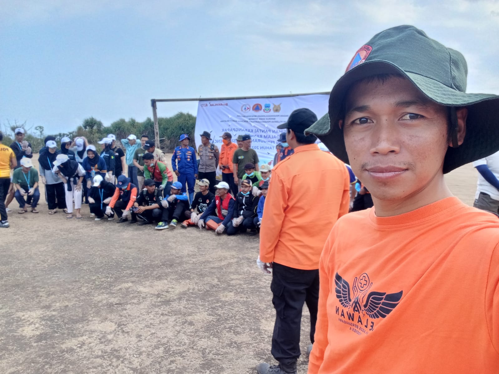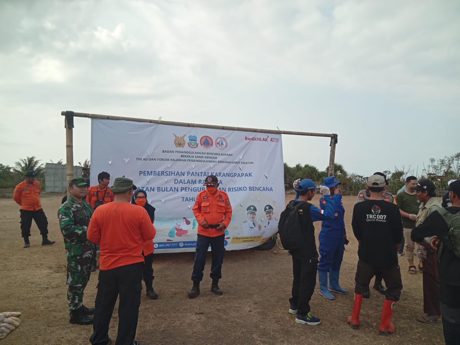 Giat Pembersihan Pantai Karangpapak ini dihadiri oleh sekitar 100 orang relawan yang terdiri dari berbagai unsur Pemerintahan maupun Masyarakat seperti, TNI, Polri, BPBD, PMI, FPRB , Komunitas Relawan Kemanusiaan,dll.