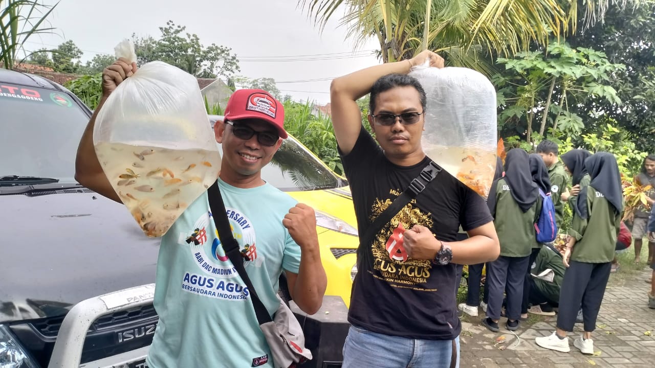” Kami sebagian kecil dari nama agus di seluruh indonesia tergerak dengan kerusakan alam yang semakin menjadi bertempat di daerah kami Tulungagung, mewakili Agus-Agus Bersaudara Indonesia untuk aksi nyata menjaga alam tetap lestari. udara semakin sejuk. dan lingkungan kelihatan asri serta endemik ikan sungai ini tetap terjaga. Maka dari itu kami menebar benih sekitar seribu bibit terdiri dari koi, nila, lele, patin, dan tawes. Salam lestari “, tutup Gus Supri mewakili AABI DAC Tulungagung.