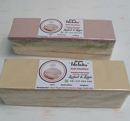 Brem Idolaku Asli Madiun Diproduksi di Dsn. Tempuran Ds. Kaliabu Kec. Mejayan Kab. Madiun Komposisi : Sari Tape Ketan Murni, Ragi, Soda Kue. Harga : 1 pak bungkus plastik isi 4 Original Rp. 9.000,- 1 pak bungkus plastik isi 4 Rasa Strawbery, Coklat, Melon, dsb Rp. 9.500,- 1 pak bungkus plastik isi 4 Rasa Mix Rp. 9.500,- Promo : Beli 10 pak dapat bonus gratis 1 pak Produk dikirim oleh Agus Wibowo dari Madiun, Jawa Timur